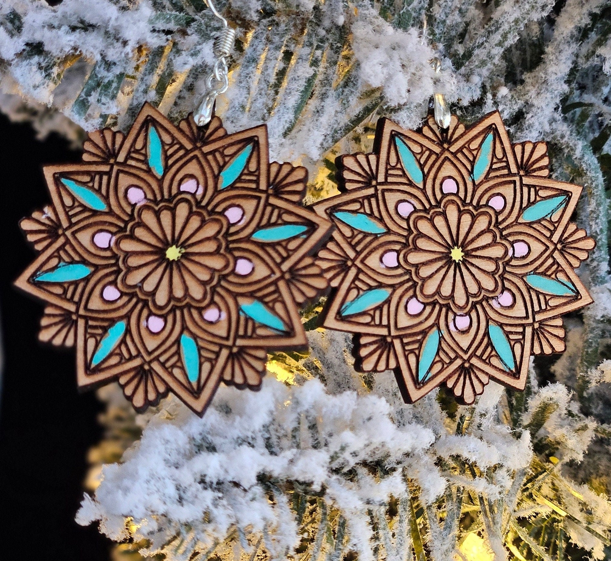 Elevate your style with our Painted Wood Mandala Dangle Earrings. Each pair is meticulously handcrafted to perfection, featuring a stunning laser-cut mandala design that captures the essence of timeless elegance. Crafted from premium wood, these earrings offer a sophisticated touch to any ensemble, making them an exquisite addition to your jewelry collection.