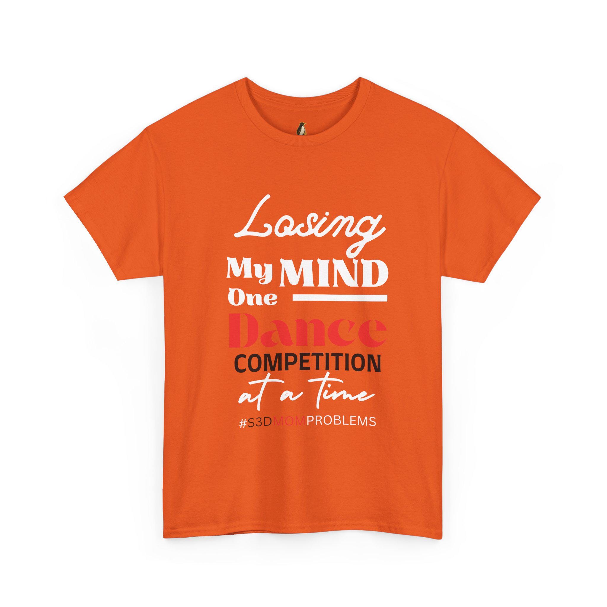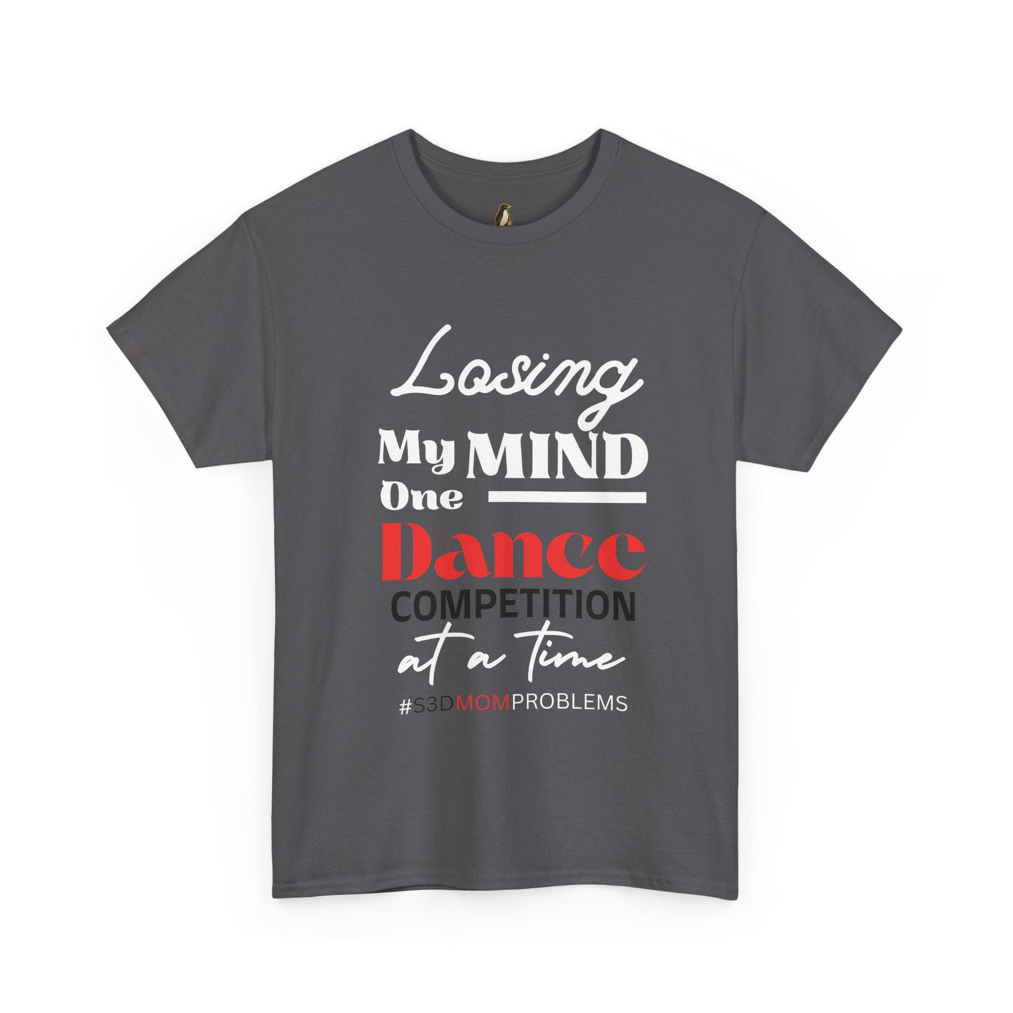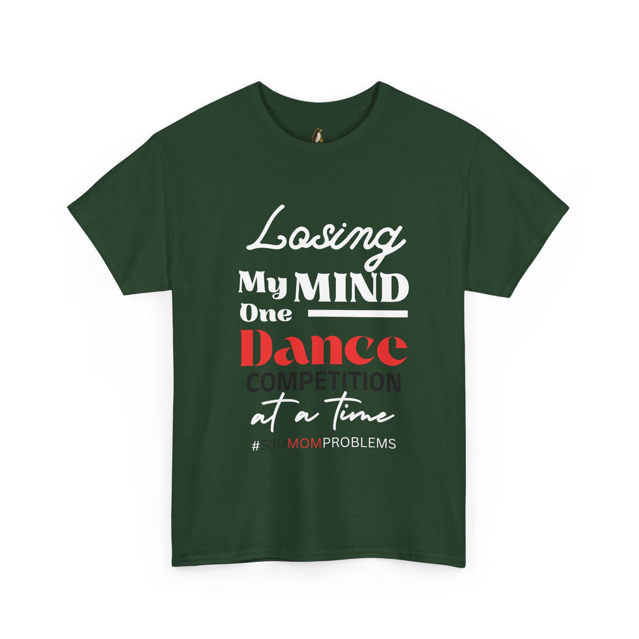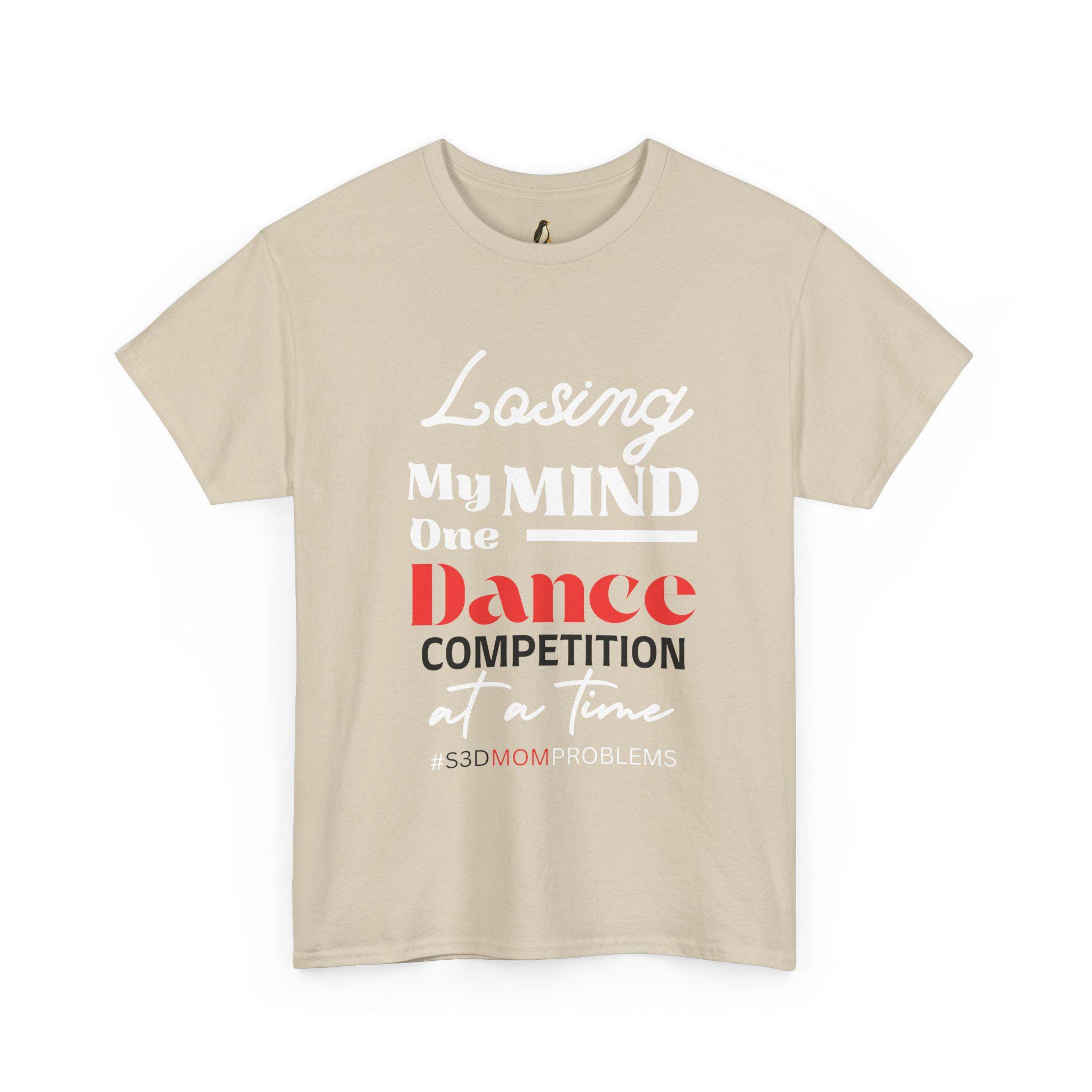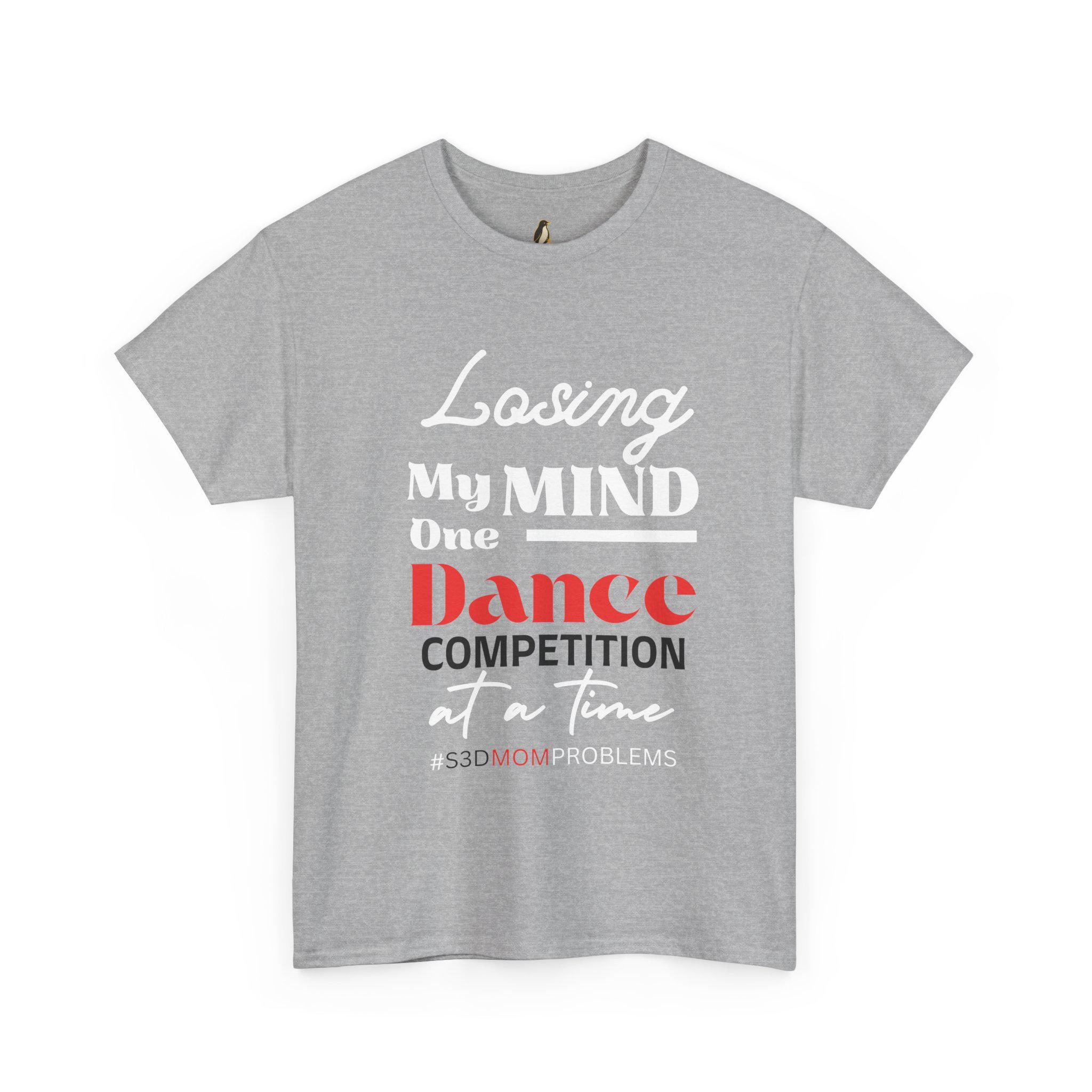 Losing My Mind One Dance Competition At A Time is a soft, comfortable tee made for the fierce, exhausted, and endlessly supportive dance parents who live for recital weekends and late-night costume fixes. Picture standing in a crowded studio hallway, clipboard in hand, phone buzzing with schedule updates, and this shirt doing the talking: wry, honest, and warm. The fabric breathes through long rehearsal days and holds up after many washes. It pairs with leggings, warm-up jackets, or jeans for quick runs to the studio or long carpool shifts between venues. Wear it to competition weekends, studio fundraisers, or cozy post-show debriefs with other parents — it reads like an inside joke only other dance moms (and dads) will truly get. The printed text stays crisp, and the relaxed fit lets you move, bend, and linger at the edge of the stage without fuss.