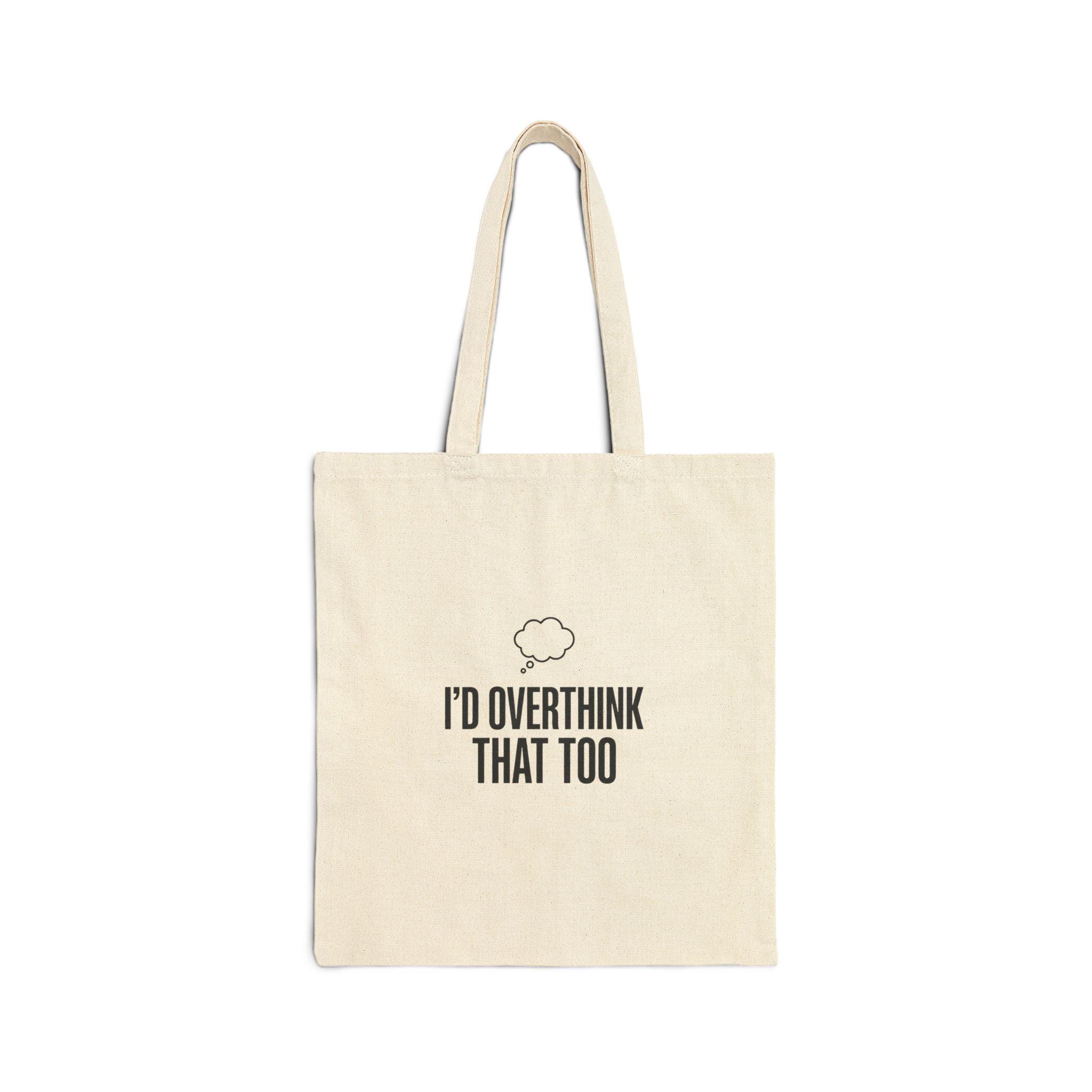 Dry, minimal tote with a deadpan, self-deprecating Sarcastic Quote set in a bold condensed sans — a wearable shrug for the meme-literate introvert. The cream canvas features a high-contrast, text-first layout with a small thought-cloud motif above the line, keeping the message crisp and instantly readable in social settings where low-key humor lands. Fits the sarcastic/self-deprecating trend vocabulary: short, confessional, and visually minimal so the one-liner reads at a glance.