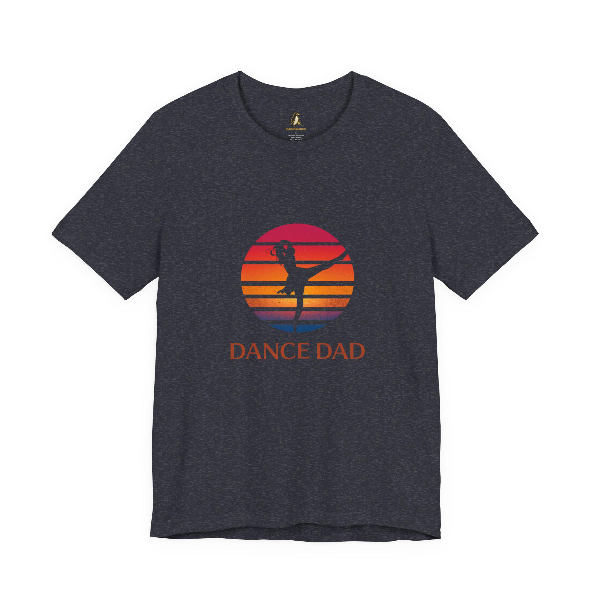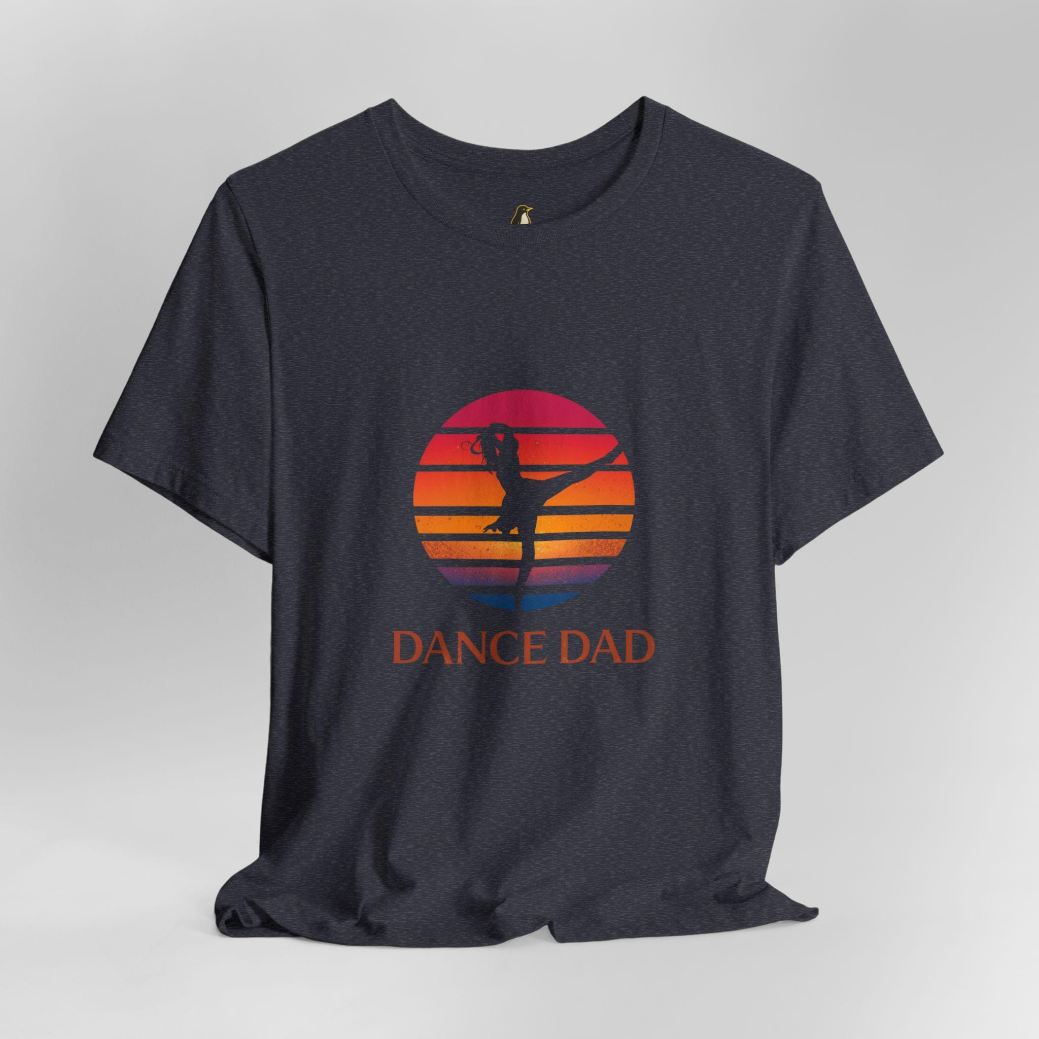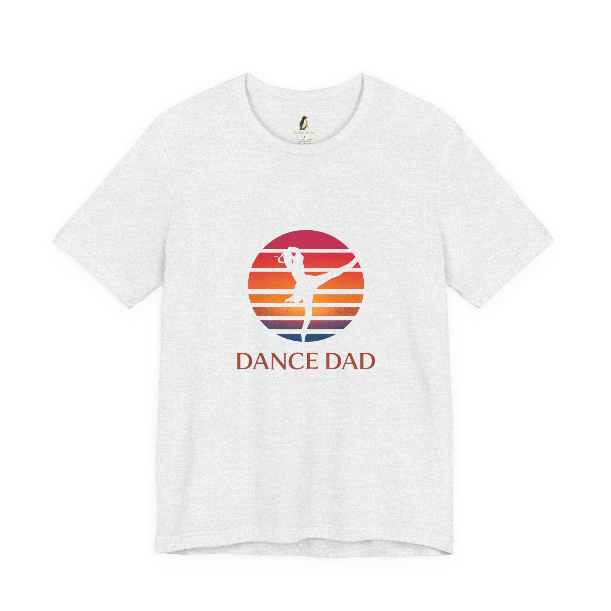 This lightweight tee carries quiet pride: a warm, sunburst-style emblem cradling a dancer mid-pose, with "DANCE DAD" grounded beneath. Soft, breathable Airlume cotton and a classic crew neck create a comfortable, worn-in feel that layers easily between rehearsals and recitals. It’s the kind of shirt a dad reaches for on early mornings at the studio, waiting rooms, or when cheering from the front row — familiar, low-key, and personal. The design reads from a distance but stays understated, letting the wearer share support without shouting. Finished with durable side seams, a ribbed collar, and a tear-away label for comfort, this shirt is made to be worn often and kept long after the last bow.