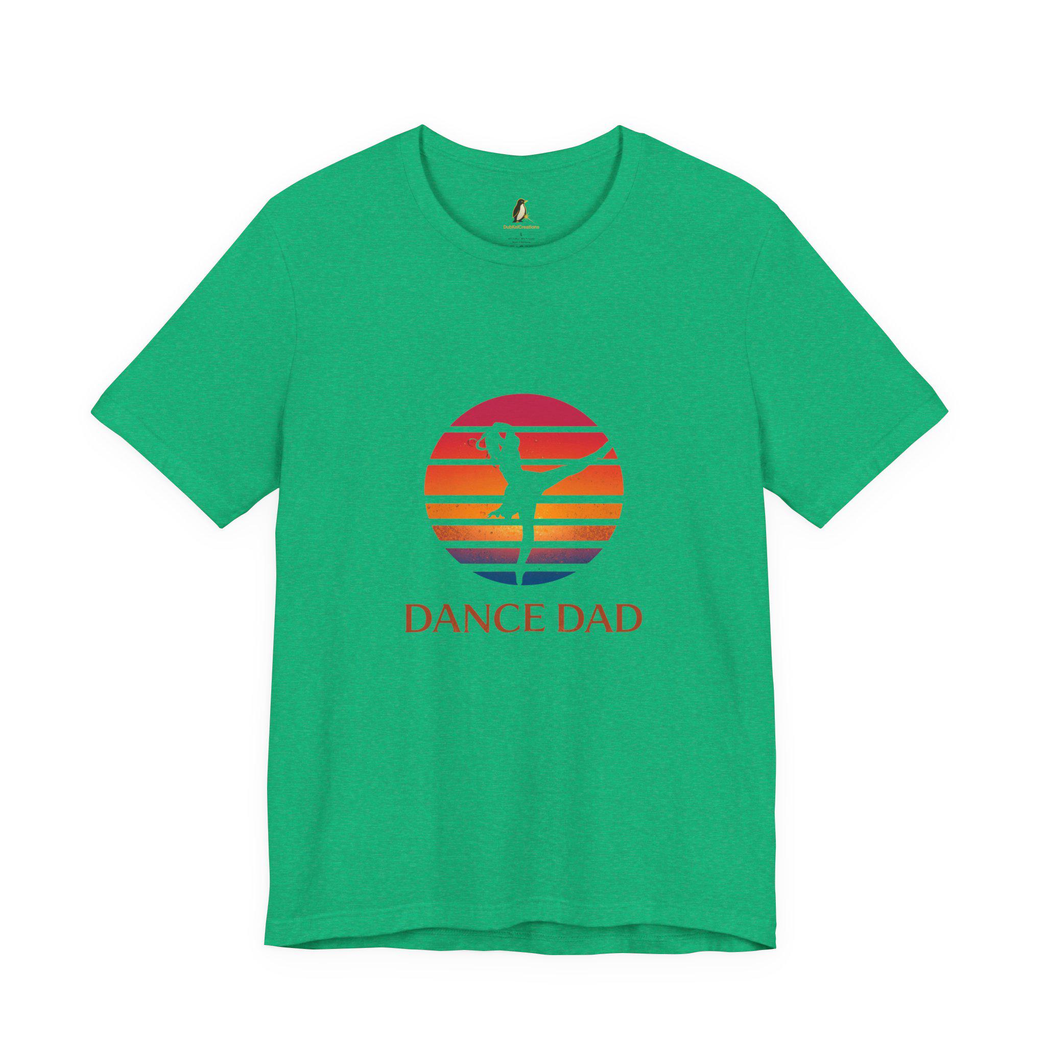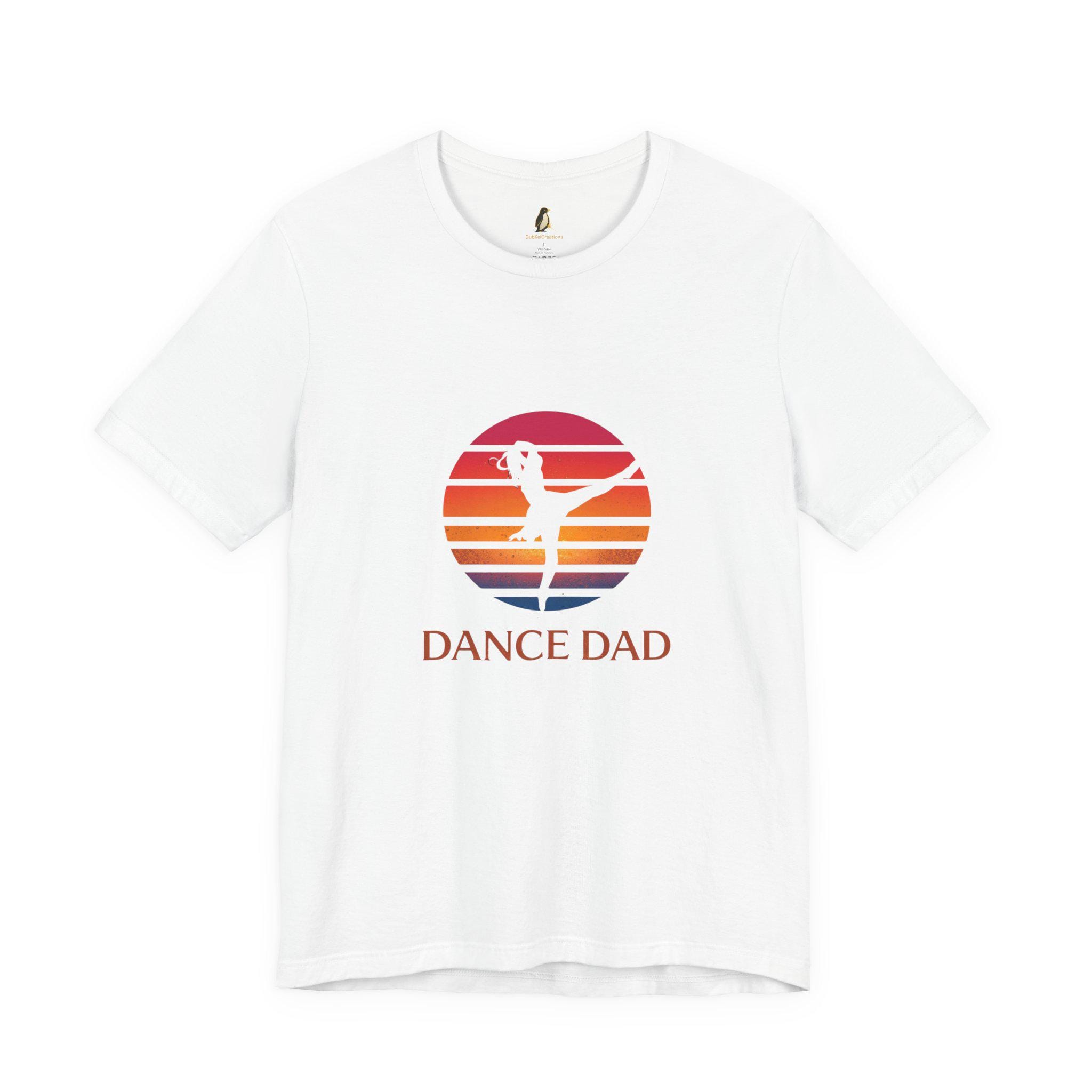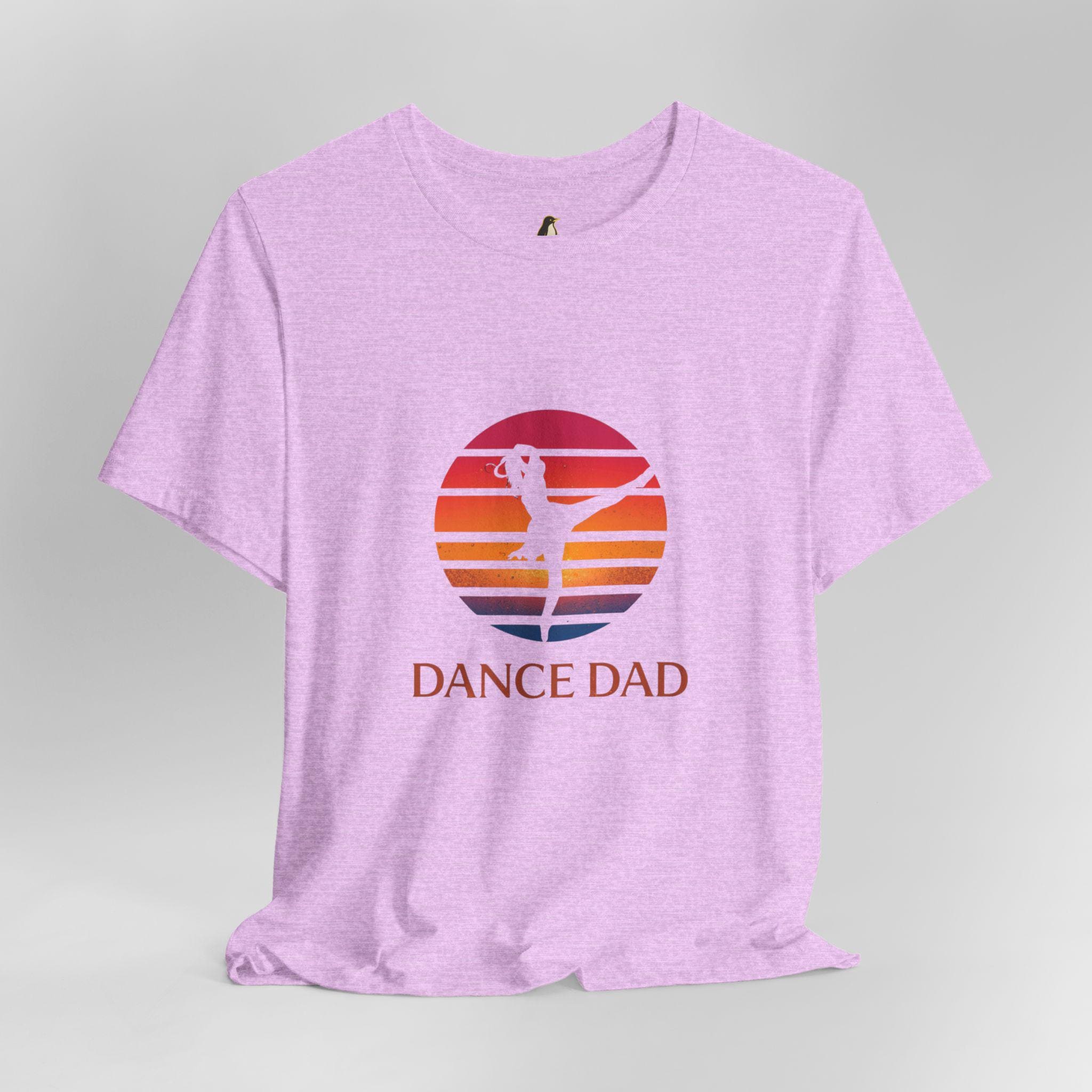 This lightweight tee carries quiet pride: a warm, sunburst-style emblem cradling a dancer mid-pose, with "DANCE DAD" grounded beneath. Soft, breathable Airlume cotton and a classic crew neck create a comfortable, worn-in feel that layers easily between rehearsals and recitals. It’s the kind of shirt a dad reaches for on early mornings at the studio, waiting rooms, or when cheering from the front row — familiar, low-key, and personal. The design reads from a distance but stays understated, letting the wearer share support without shouting. Finished with durable side seams, a ribbed collar, and a tear-away label for comfort, this shirt is made to be worn often and kept long after the last bow.