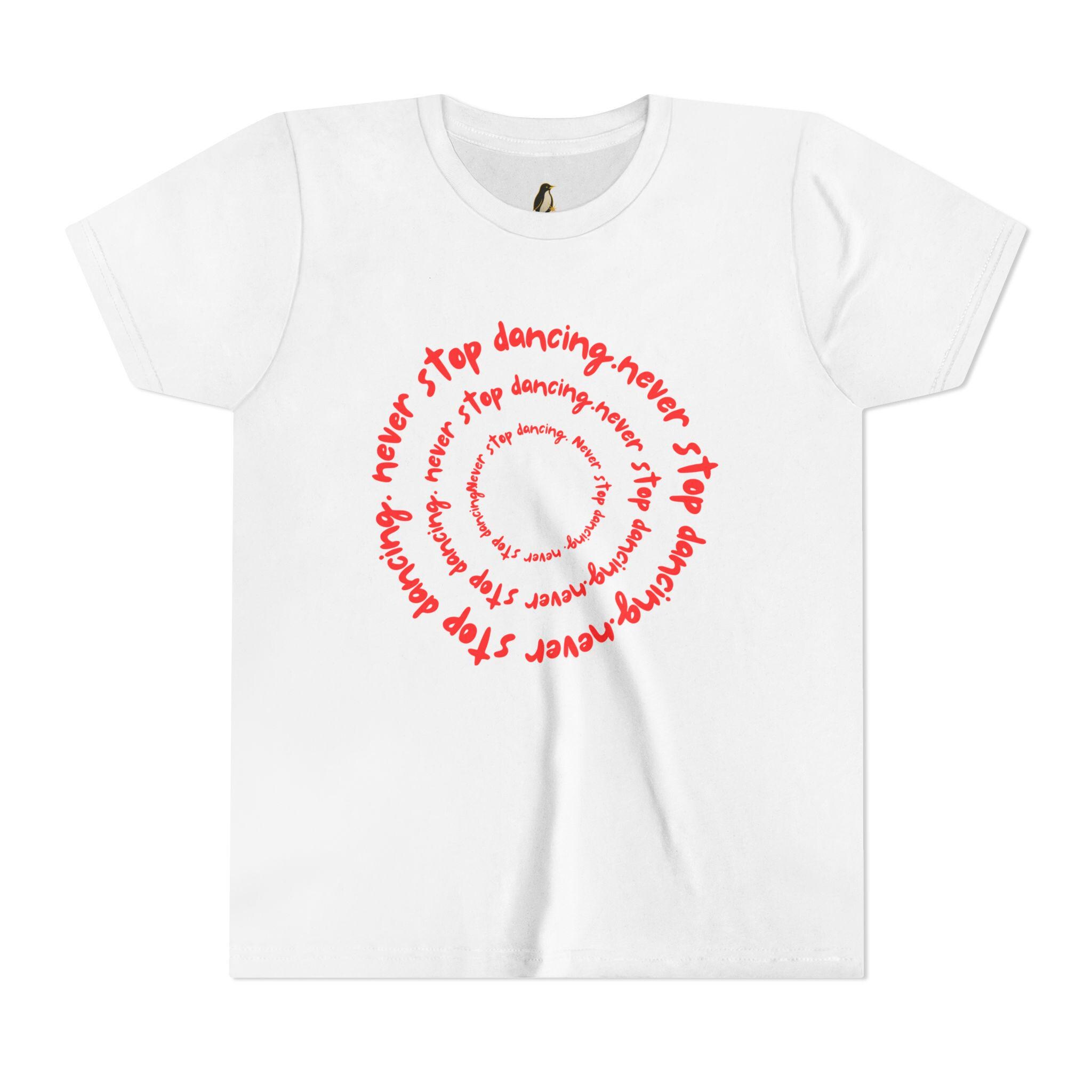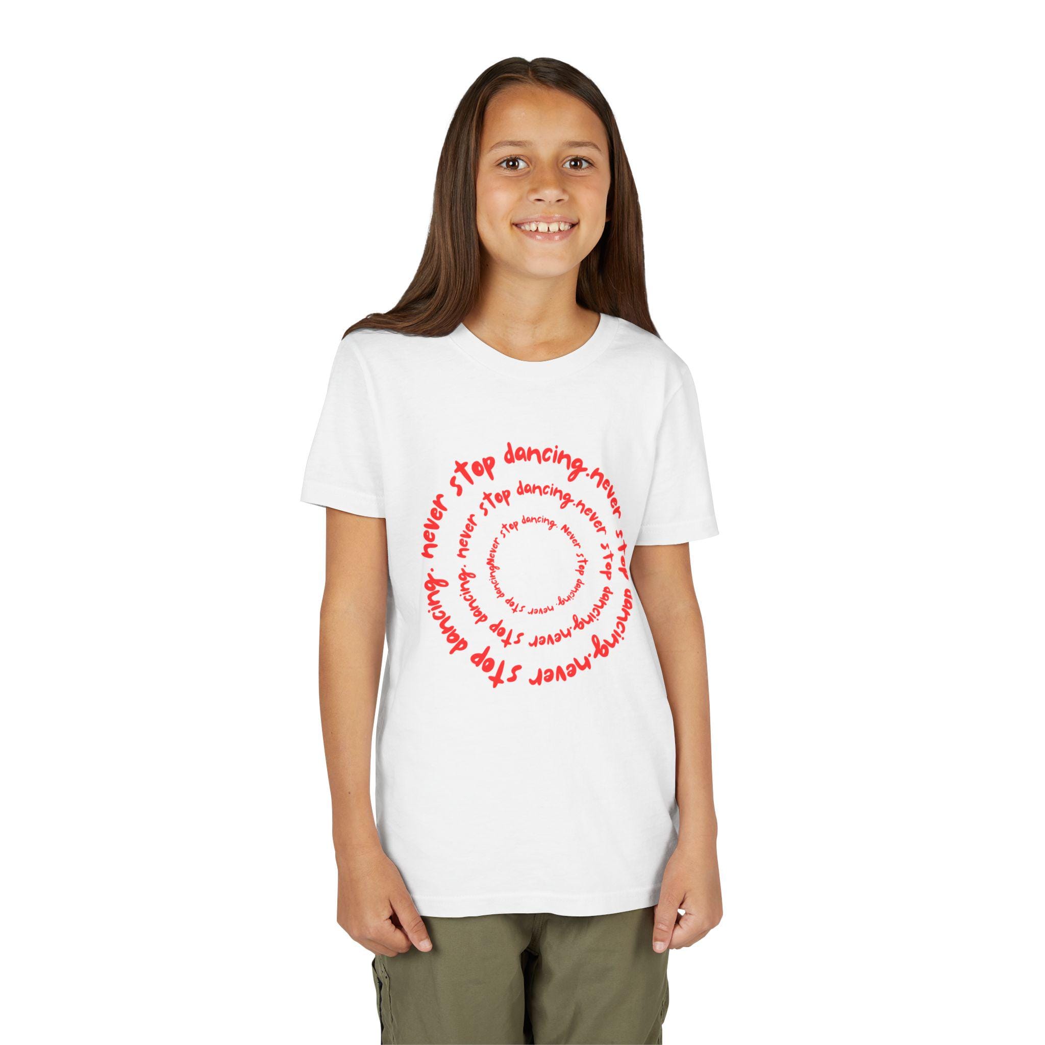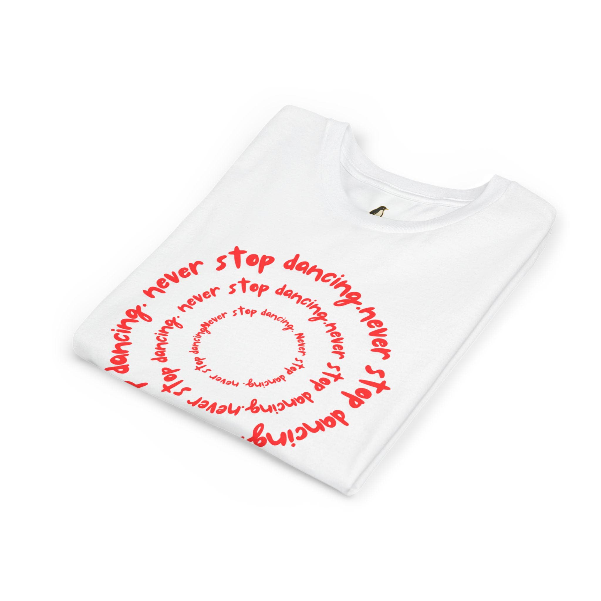 Soft, lightweight youth tee with a gentle, circular design that feels playful and calming. The airy cotton build drapes easily for everyday movement — perfect for running, dancing, or quiet afternoons of creativity. The subtle spiral text and small emblem sit low on the chest, giving the shirt a handcrafted, slightly vintage vibe that kids will reach for again and again. Breathable and soft against the skin, it layers well under jackets or stands alone on warmer days. Ethically made blanks ensure comfortable wear and durable shape through many washes.