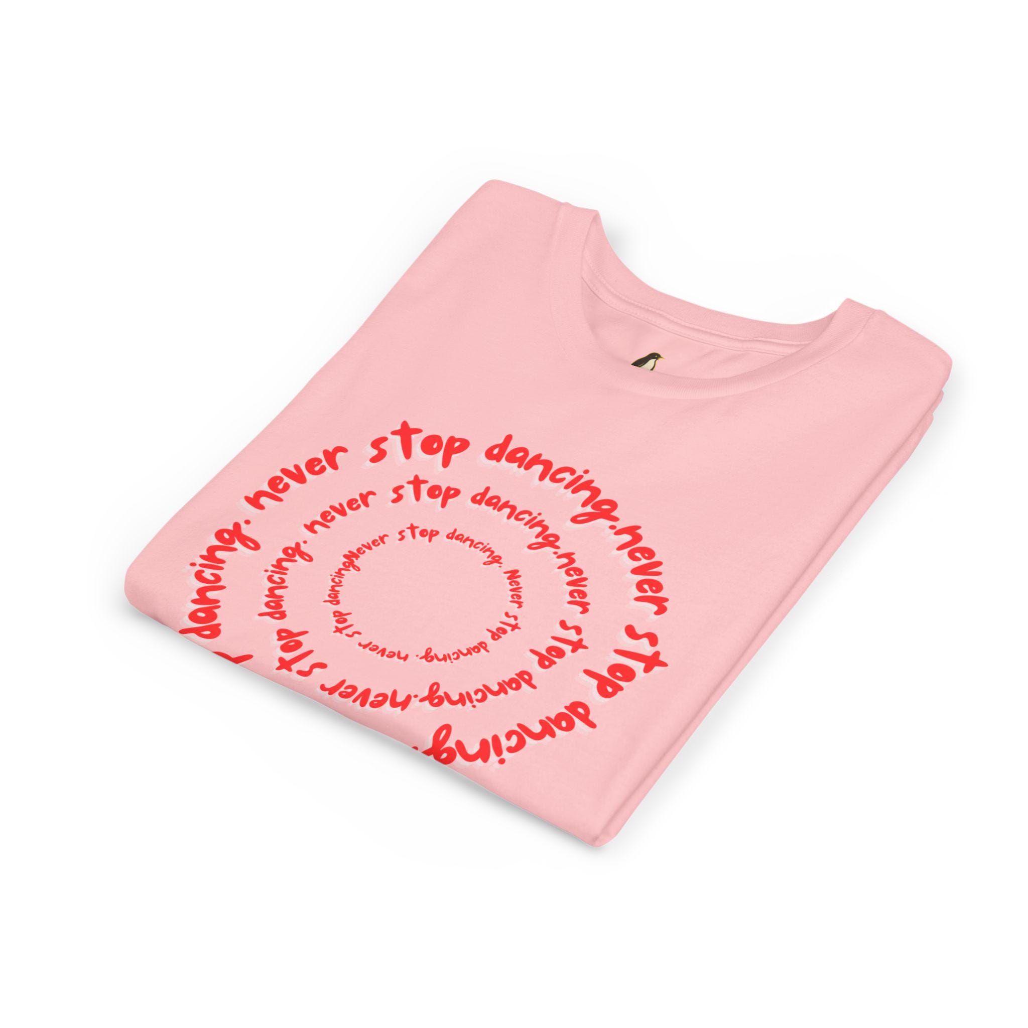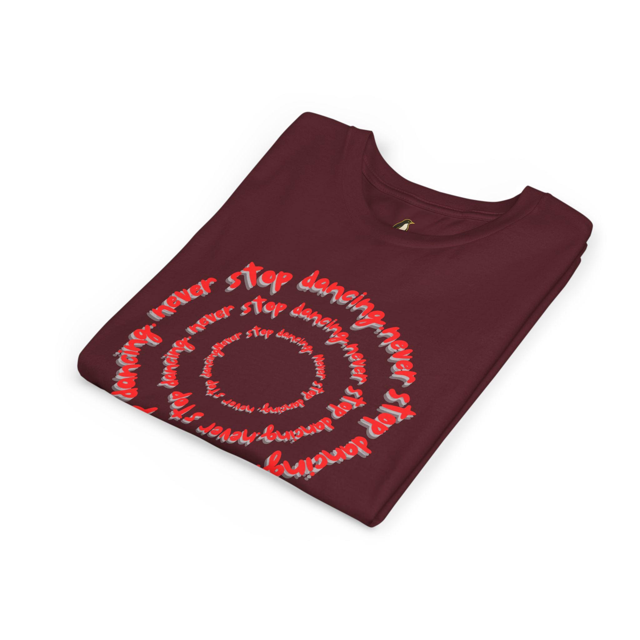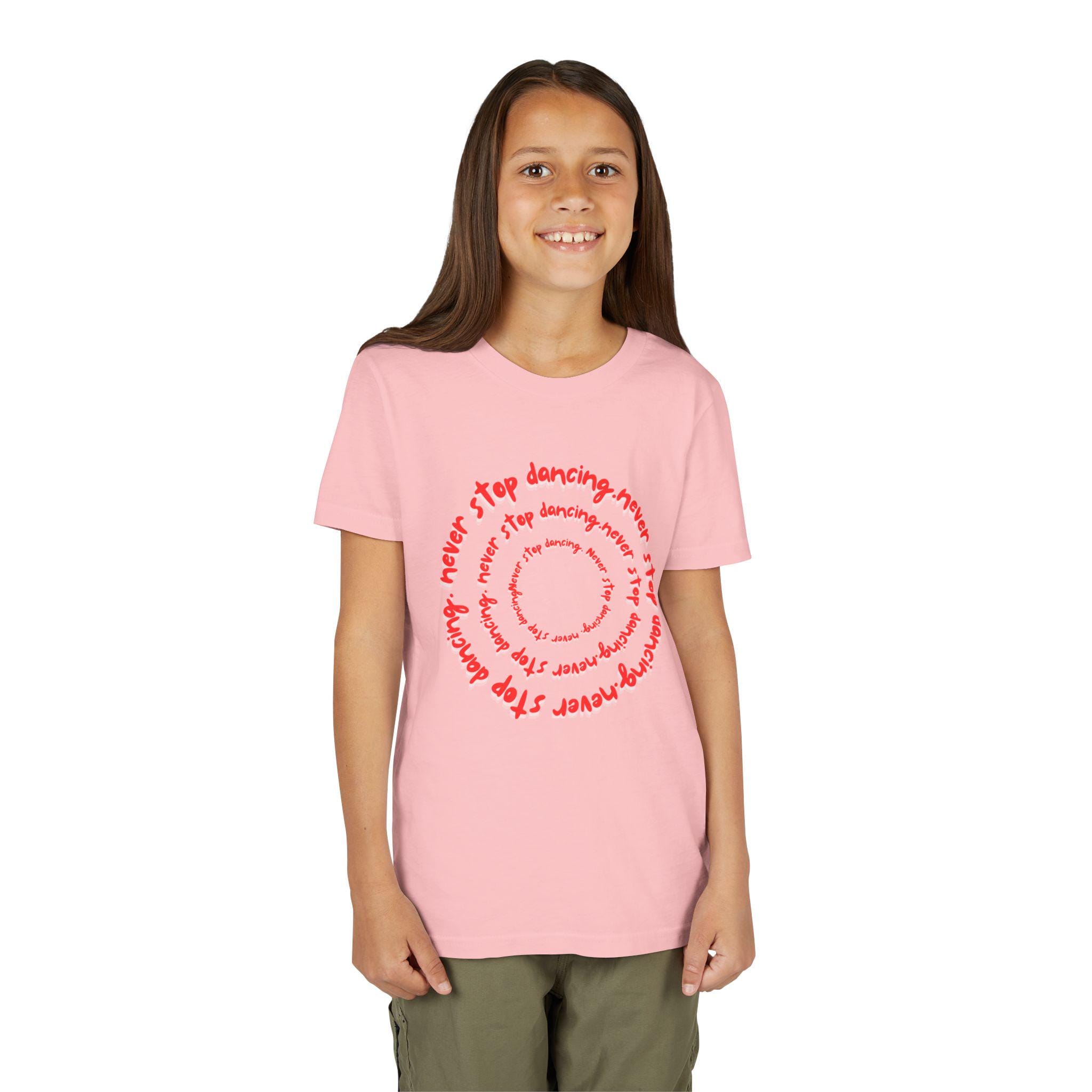 Soft, lightweight youth tee with a gentle, circular design that feels playful and calming. The airy cotton build drapes easily for everyday movement — perfect for running, dancing, or quiet afternoons of creativity. The subtle spiral text and small emblem sit low on the chest, giving the shirt a handcrafted, slightly vintage vibe that kids will reach for again and again. Breathable and soft against the skin, it layers well under jackets or stands alone on warmer days. Ethically made blanks ensure comfortable wear and durable shape through many washes.