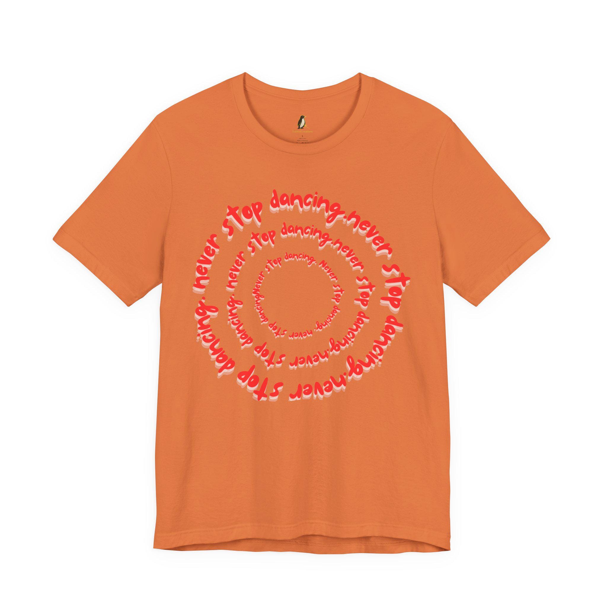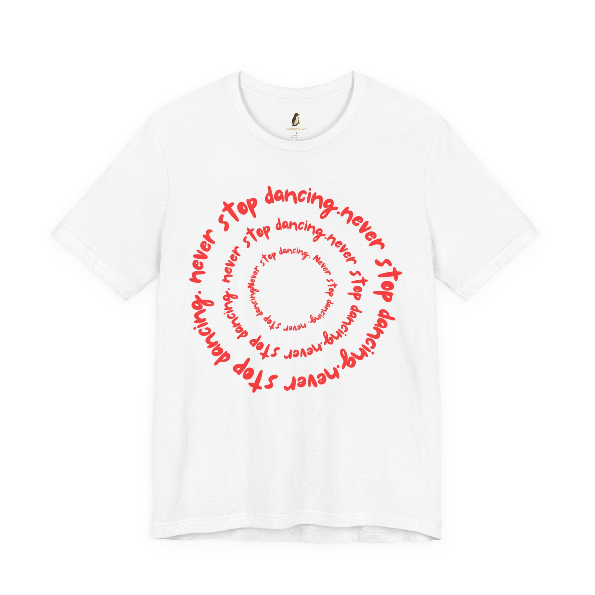 Soft, breathable, and thoughtfully made — this lightweight jersey tee brings quiet confidence to everyday wear. A subtle spiral graphic centers the chest, drawing the eye with a small red emblem and hand-lettered script that seems to orbit the logo. It feels lived-in from the first wear: light enough for layering under a jacket, yet polished enough to stand on its own during casual meetups or low-key events. Natural cotton keeps you comfortable while construction details—side seams, ribbed collar, and shoulder tape—help the shirt keep its shape through washes. The tear-away label and ethically produced fabric make it an easy choice for someone who cares about comfort and craft.