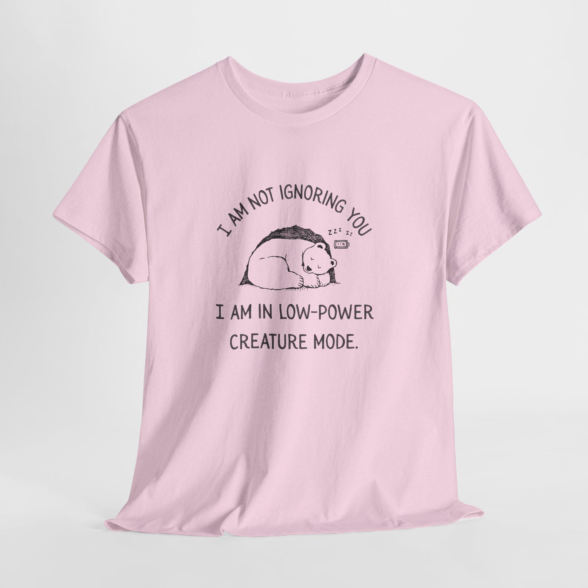 Wear it when you want to be cozy without announcing it. It reads like a quiet shrug — relatable to introverts, nap lovers, and anyone who treasures downtime. Layer under a cardigan for a soft, homey vibe or pair with joggers for a slow-weekend routine. The gentle illustration and muted text make this tee approachable and sincere, not loud — the kind of garment that feels familiar the moment you put it on.