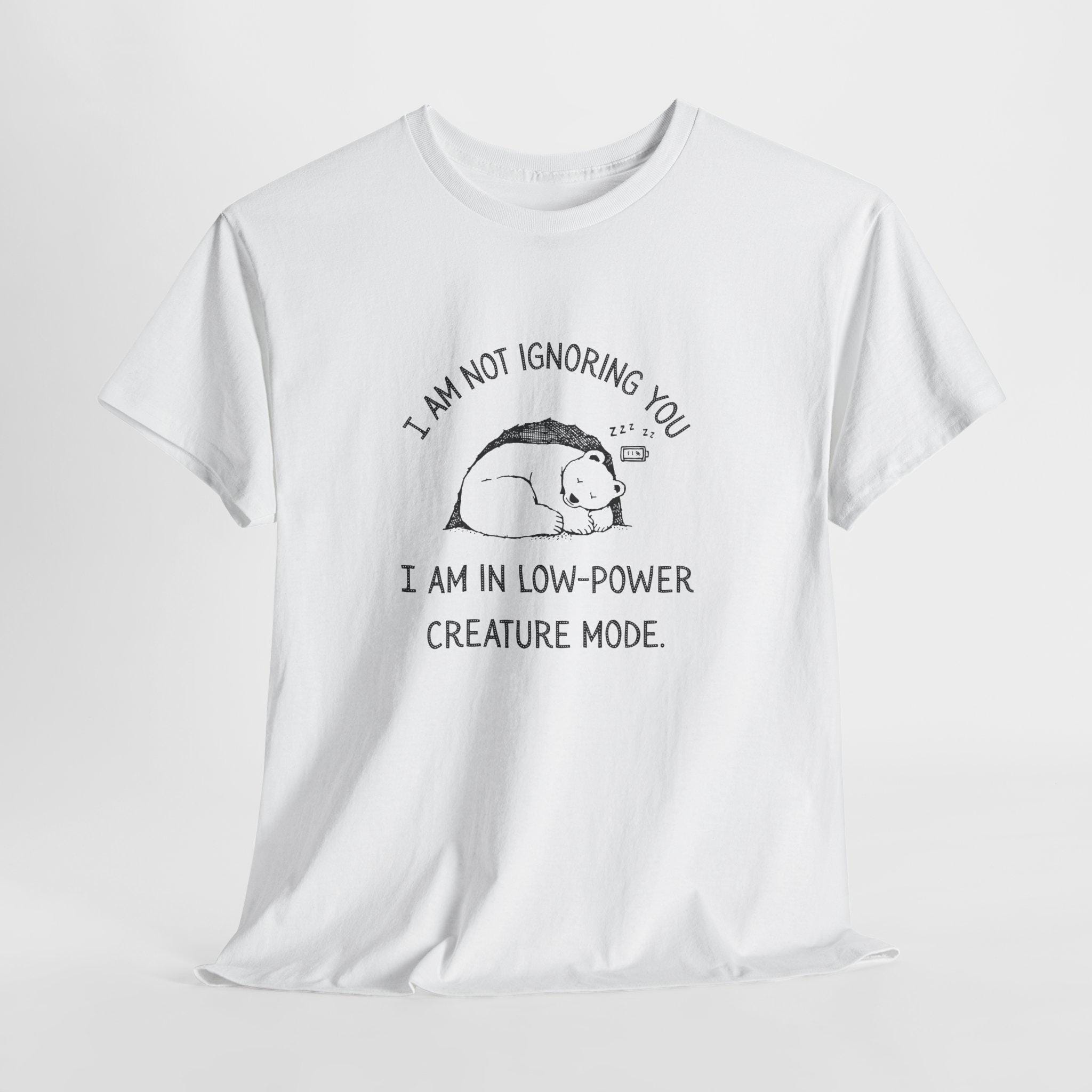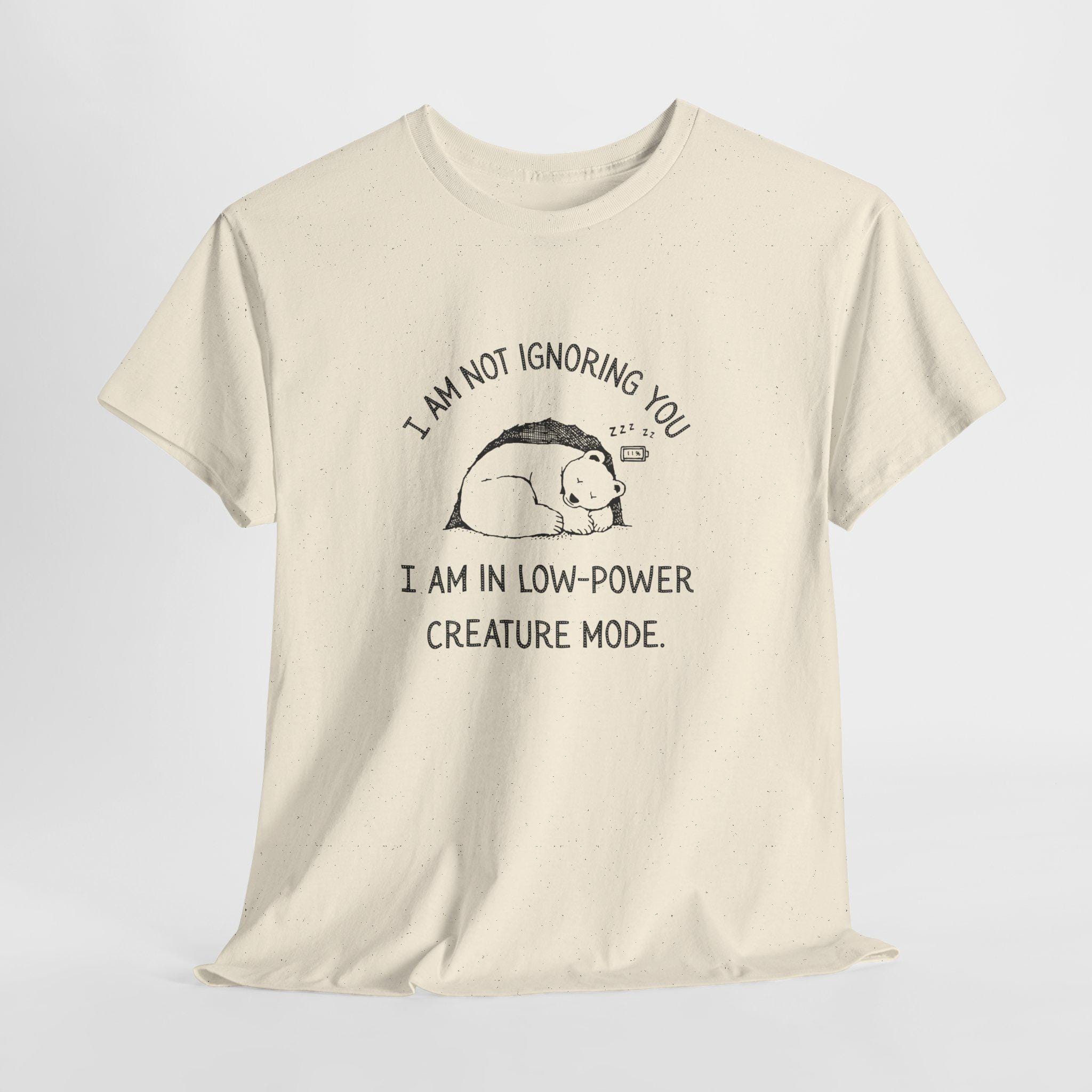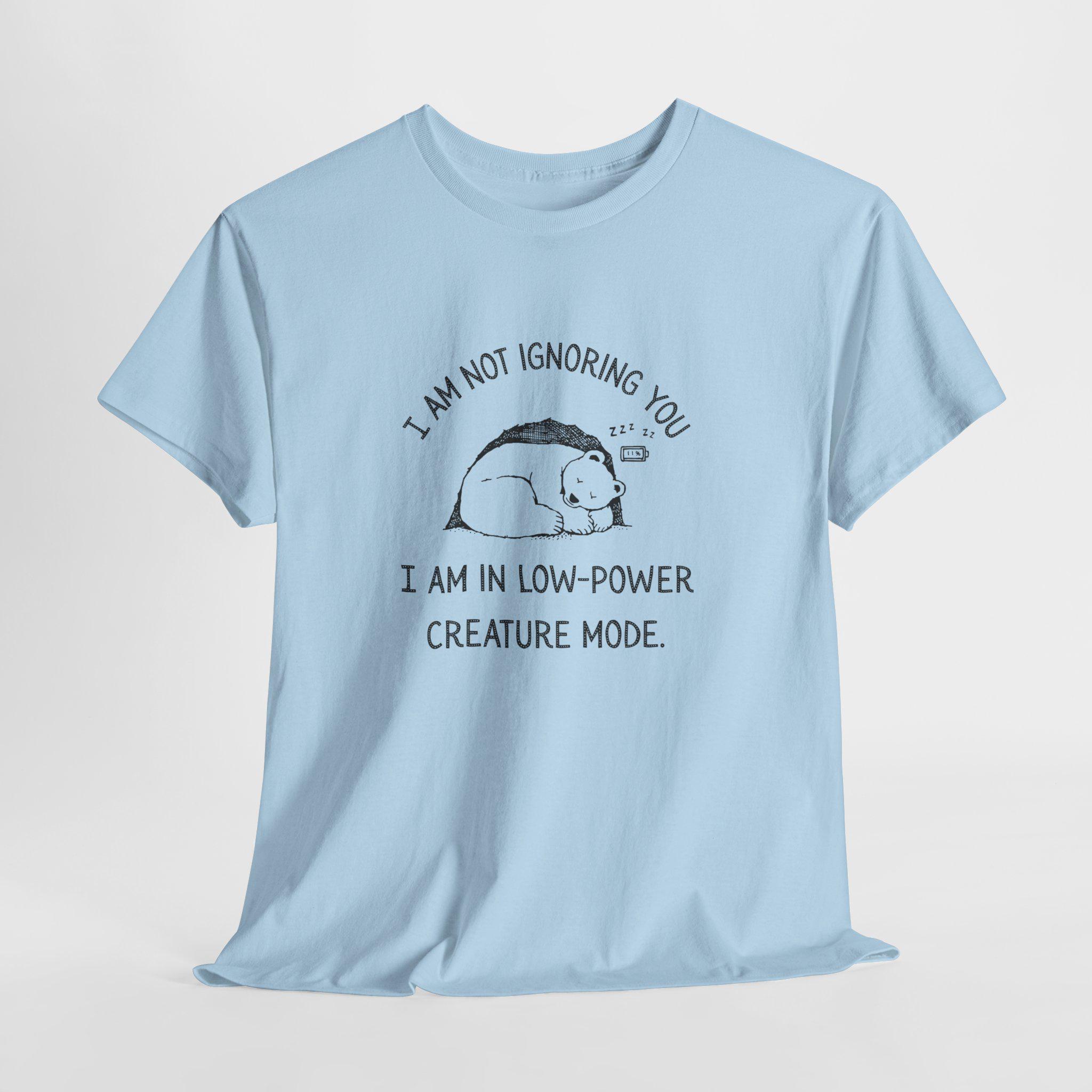 A soft, classic cotton tee that quietly says what you’re feeling. Featuring a gentle hand-drawn sleeping creature and the line this shirt carries a warm, slightly whimsical mood. It settles into slow mornings, chill afternoons, and nights when social energy runs low. The relaxed crew neck and classic cut make it easy to slip on with jeans or lounge pants. Breathable 100% cotton (solid colors) and sturdy medium-weight fabric give it everyday durability without feeling stiff. Subtle printed sleeve and neck details add a finished look while keeping the design calm and understated.